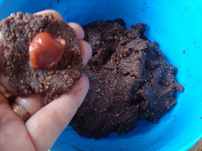 Modelam cu mana bilutele. Compozitia este putin sfaramicioasa caci margarina se intareste foarte repede insa modelandu-le se incalzeste de la caldura mainilor si se modeleaza foarte usor.