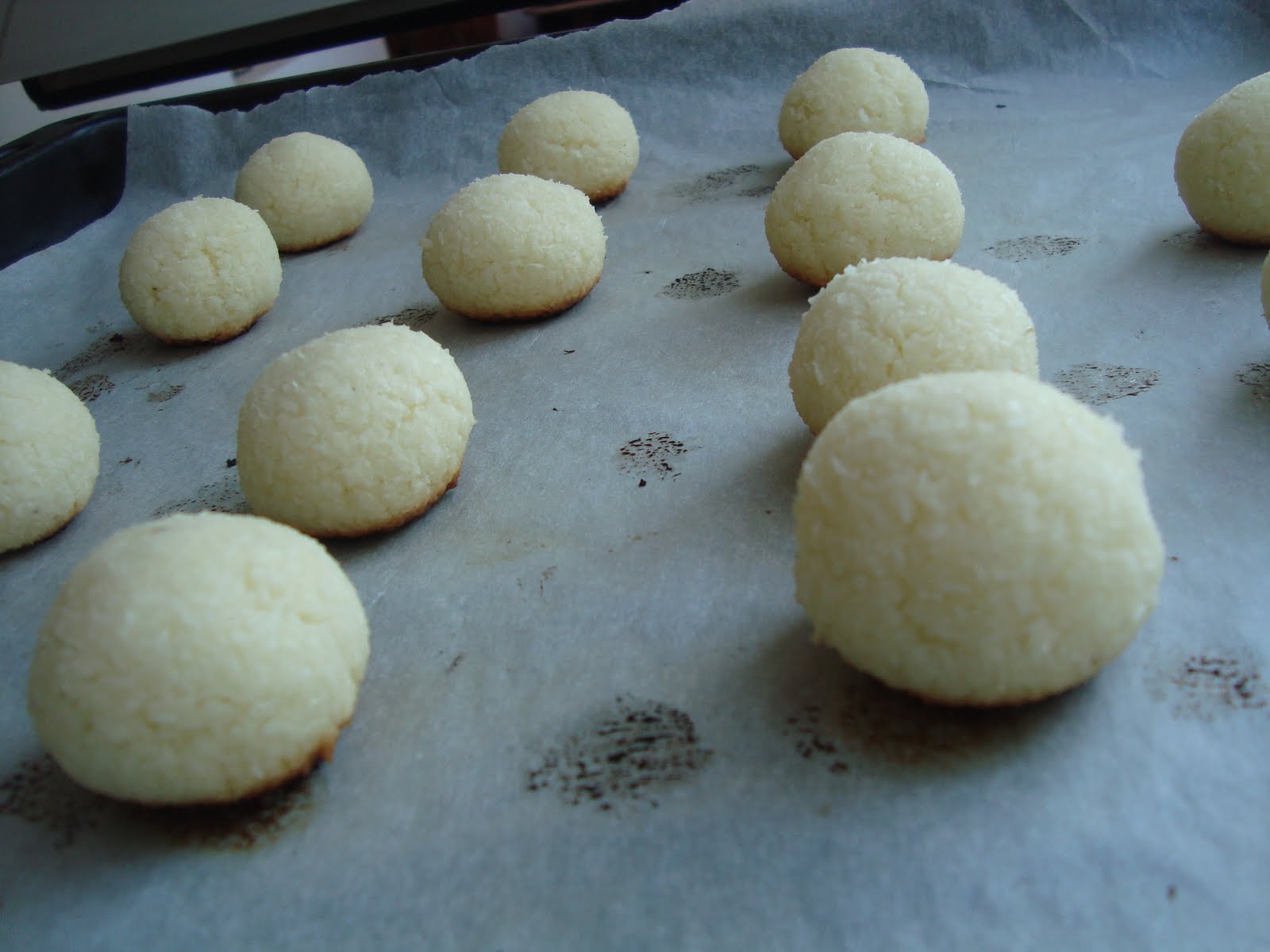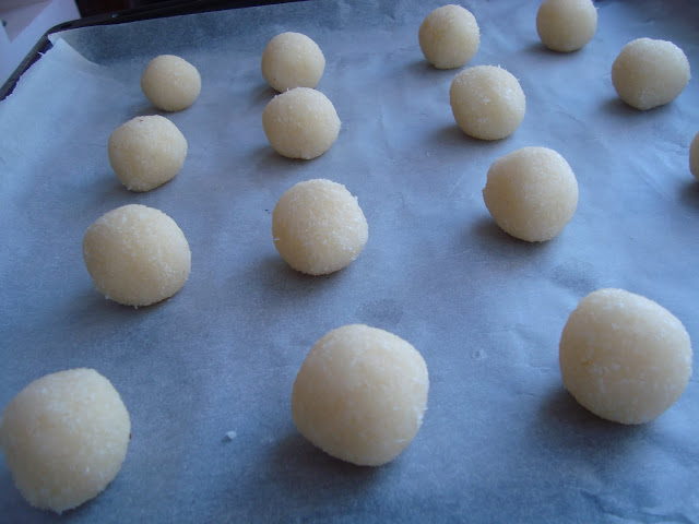 Formama bilute de marimea unei nuci si le punem intr-o tava tapetata cu hartie de copt.