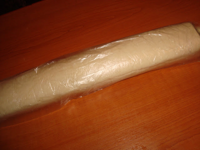 O rulam ca pe o rulada in folie.Dam la congelator 10-15 minute.