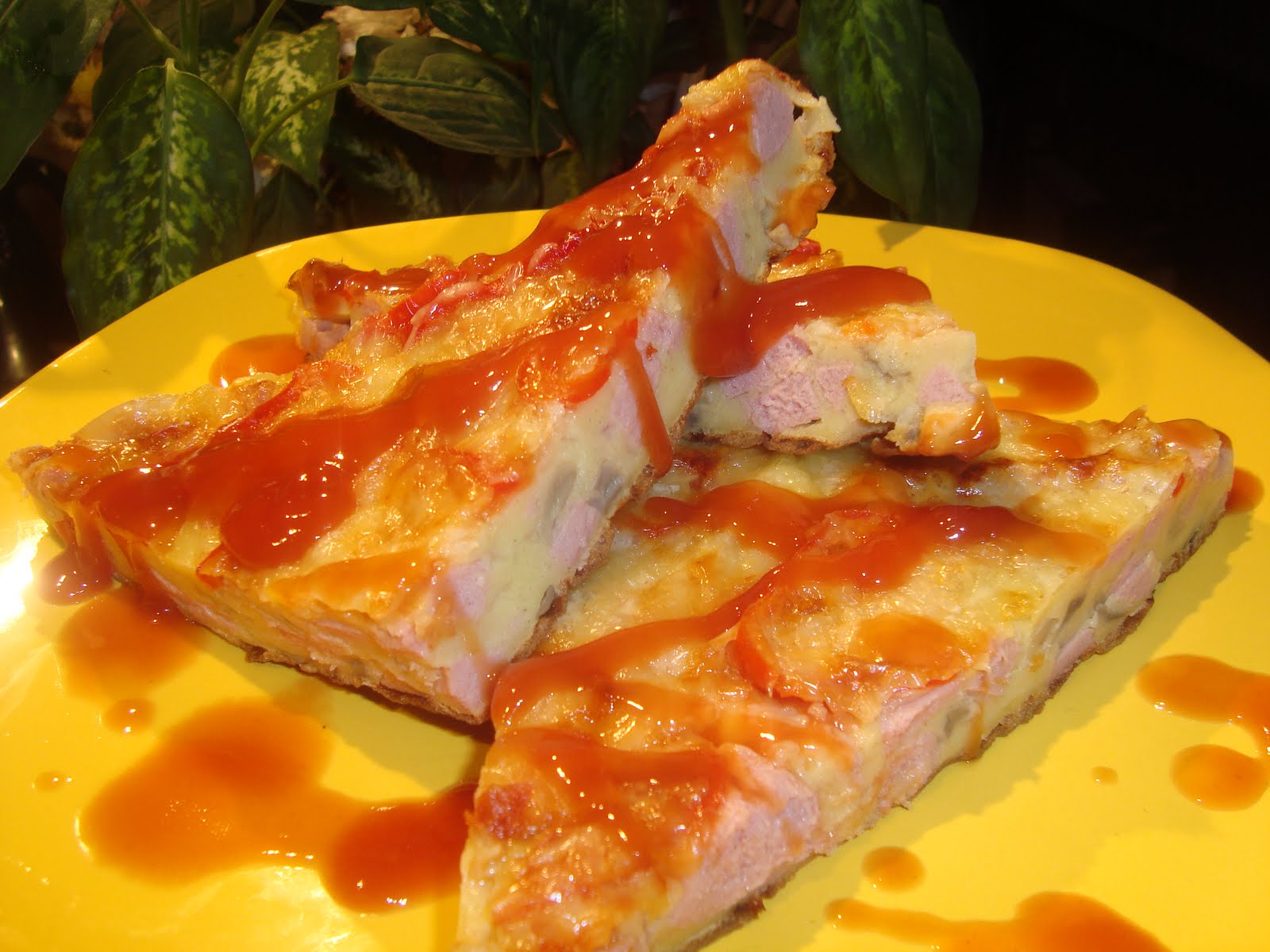 Cand s-a inchegat se adauga deasupra putin ketchup si ardeii taiati fasii .