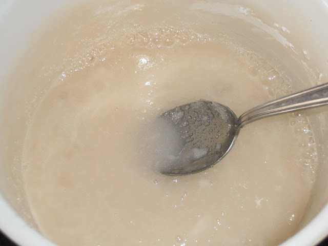 Adaugam untul topit si esenta de rom la sirop.Punem apoi laptele praf amestecat cu cacao si frecam bine cu o lingura pana obtinem o compozitie omogena ca o smantana groasa.