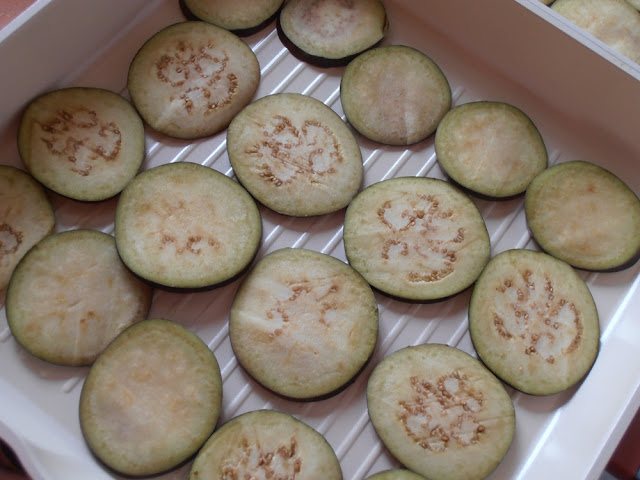 Incingem grill-ul apoi punem feliile de vinete pe el. Le coacem pe ambele parti .