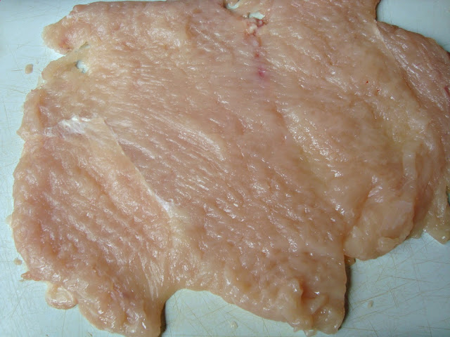 Dezosam pieptul de pui si il batem cu ciocanul de snitele.